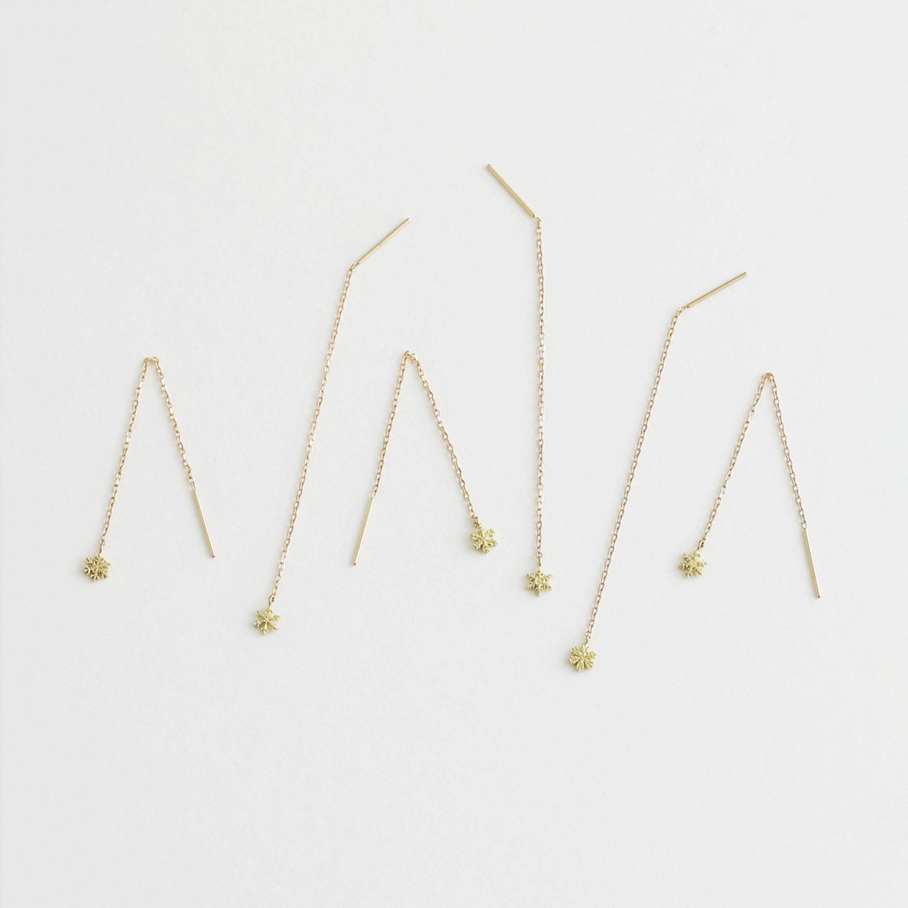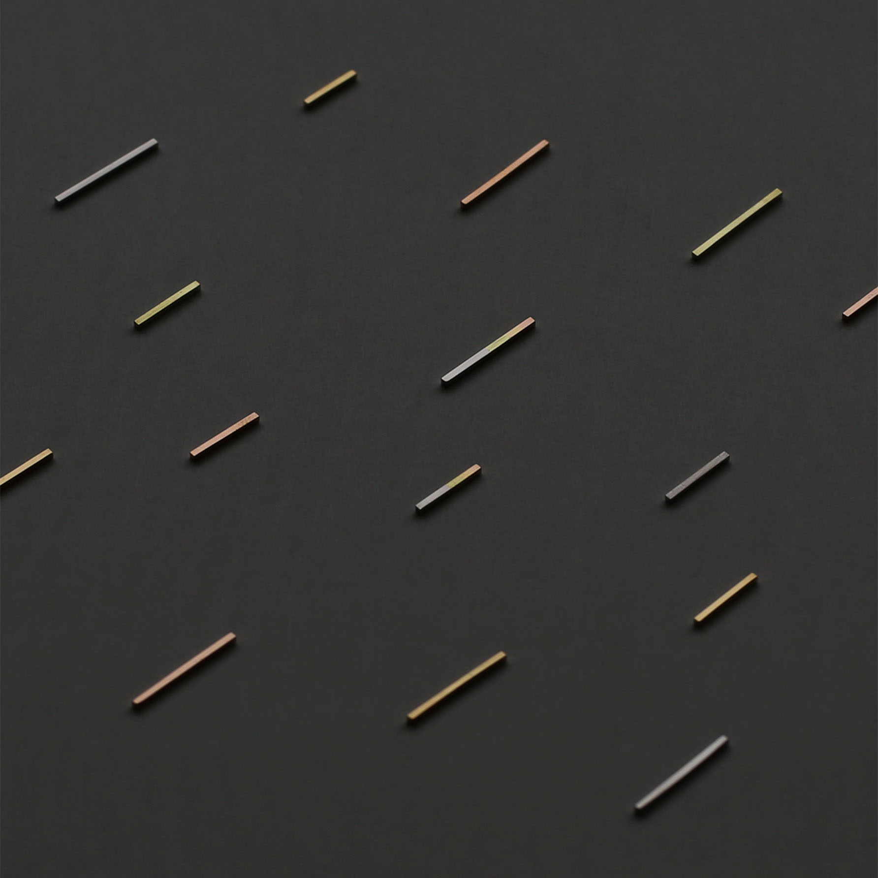 A line of light that streaks across the night sky for only a moment. These earrings are designed with the image of a star’s brilliance that disappears in the blink of an eye. They come in two shapes, long and short, and are available in single-metal versions—platinum, green gold, yellow gold, or pink gold—as well as a design that combines all four metals in a gradient to form a single line. Each time they catch the light, they offer a complex, radiant sparkle and a play of shifting colors at the ear.