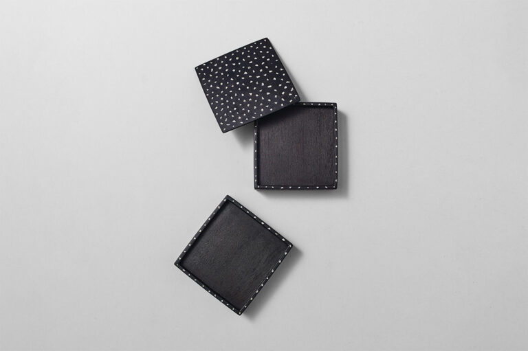 「ホワイト」をテーマに企画された新作。たくさんのカラーサンプルから、明る過ぎない、グレーの陰影が感じられる塗料をセレクトし、楓(カエデ)の表面に塗布した作品です。