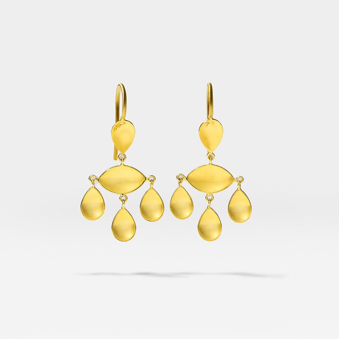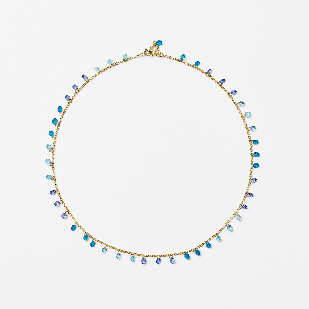 色鮮やかなカラーストーンと、希少な22カラットのイエローゴールド。Marie-Hélène de Taillacのジュエリーは、インド・ジャイプールにて、熟練した職人の手作業によって一点一点丁寧に仕立てられています。チェーンや留め金に至るまで細部に心が配られ、同じ表情のものはひとつとして存在しません。石そのものが持つ美しさを大切にしながら、遊び心を感じさせるデザインは、さまざまなスタイルや日常の装いにも自然に寄り添います。