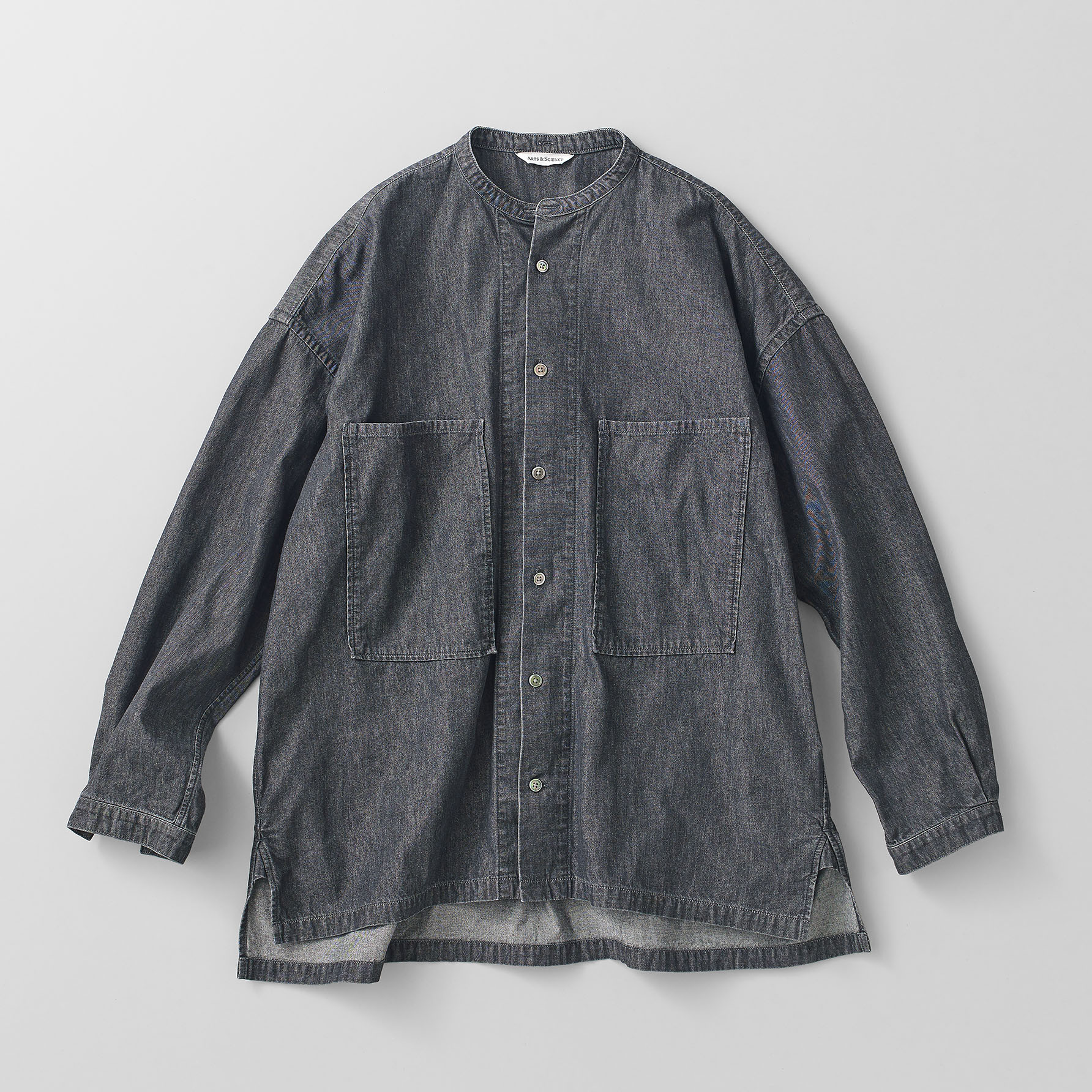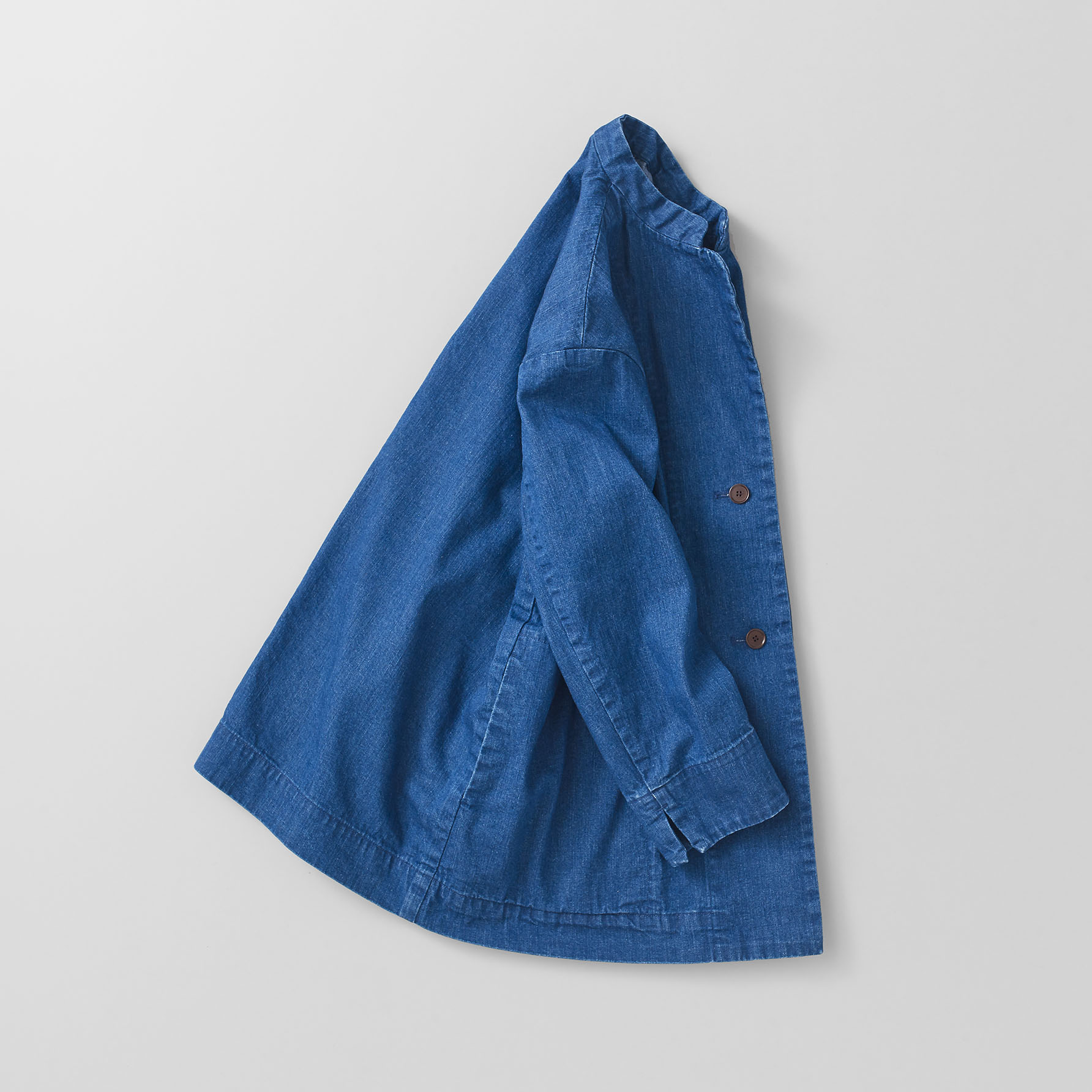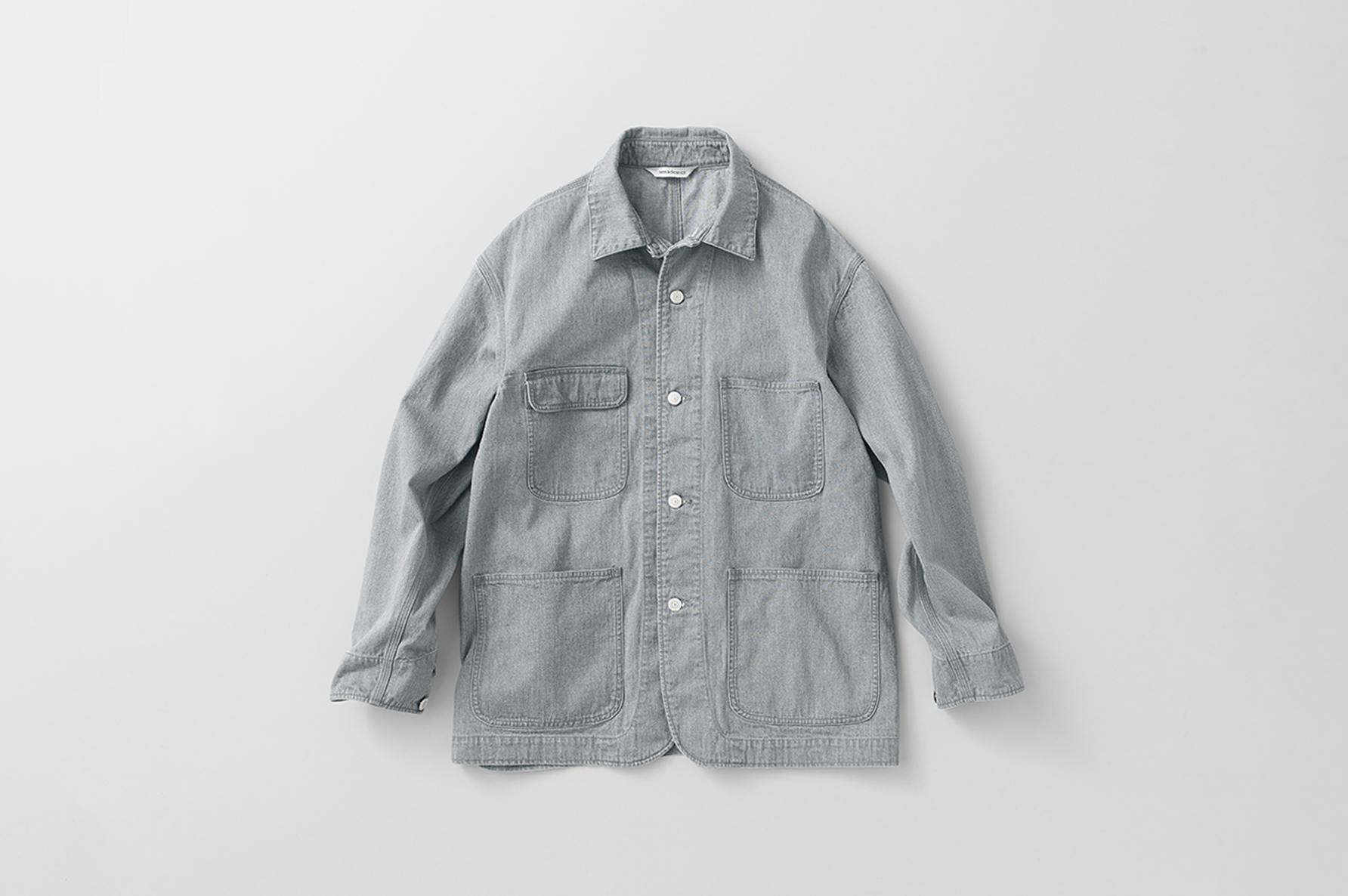 今回、新たにラインアップに加わる6ozサルファーダイドデニムは、薄手のライトオンス素材。軽やかな着心地を生かし、羽織りとしても重宝する、ゆったりとしたシルエットのシャツをご用意します。カラーは、タテ糸の染色方法に違いを出した、ライトグレー、ブルーネイビー、チャコールグレーの3色展開。