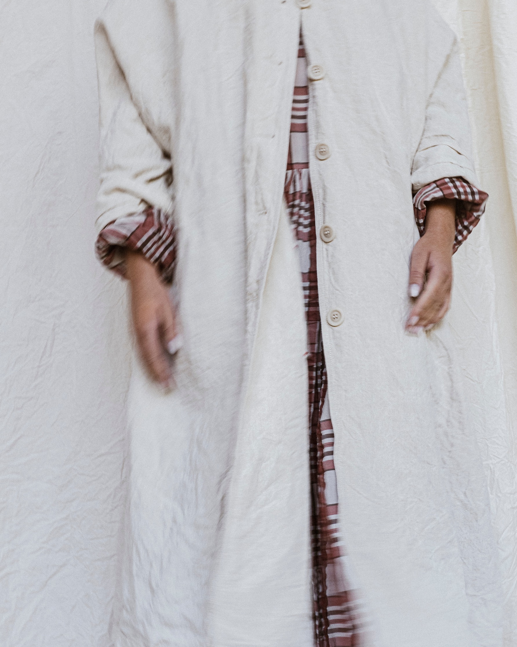 今シーズンのテーマ『Something old, something new, something reinvented, something blue(古いような、新しいような、再構築したような、青い何か)』に込められた想いには、楽しみながら作ること、ローカル生産やフランス製であることを重んじCASEY CASEYの原点回帰のようなコレクションであることが伝わってきます。それは、彼の価値観そのものの表現であり、CASEY CASEYとは一体何なのか?という問いへの表現 でもあります。また、今回のコレクションのひとつとして、リネンとインディゴの特徴を表現しています。